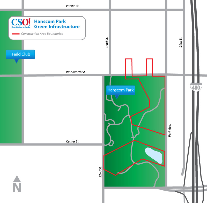 The Hanscom Park project is located in the Leavenworth Basin adjacent to the intersection of South 32nd Avenue and Ed Creighton Avenue.